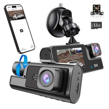 3 canali Dash Cam anteriore e interno, 1080P FHD Dash Cam, costruire in WiFi, con scheda 32GB gratuita, HDR & WDR, G-Sensor, registrazione Loop