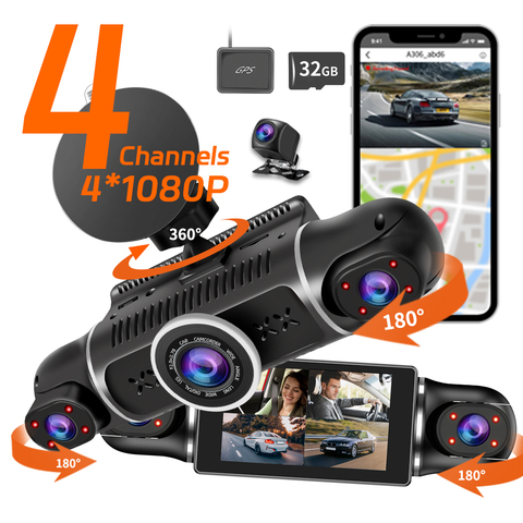 4 canali Dash Camera 1080P * 4 anteriore posteriore e interna, costruito in GPS WiFi Super visione notturna gratis 32GB Card Monitor di parcheggio